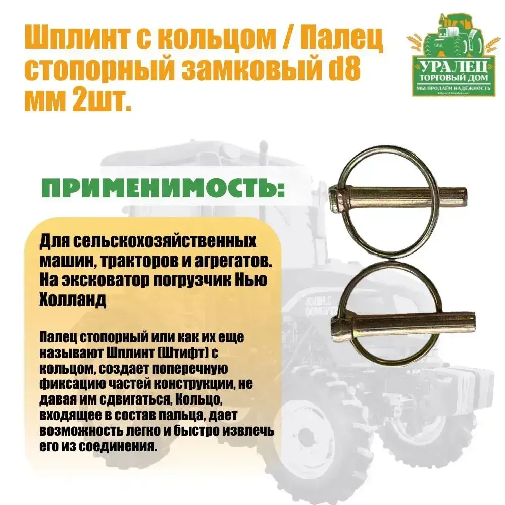 Шплинт с кольцом / Палец стопорный замковый d8 мм 2шт.