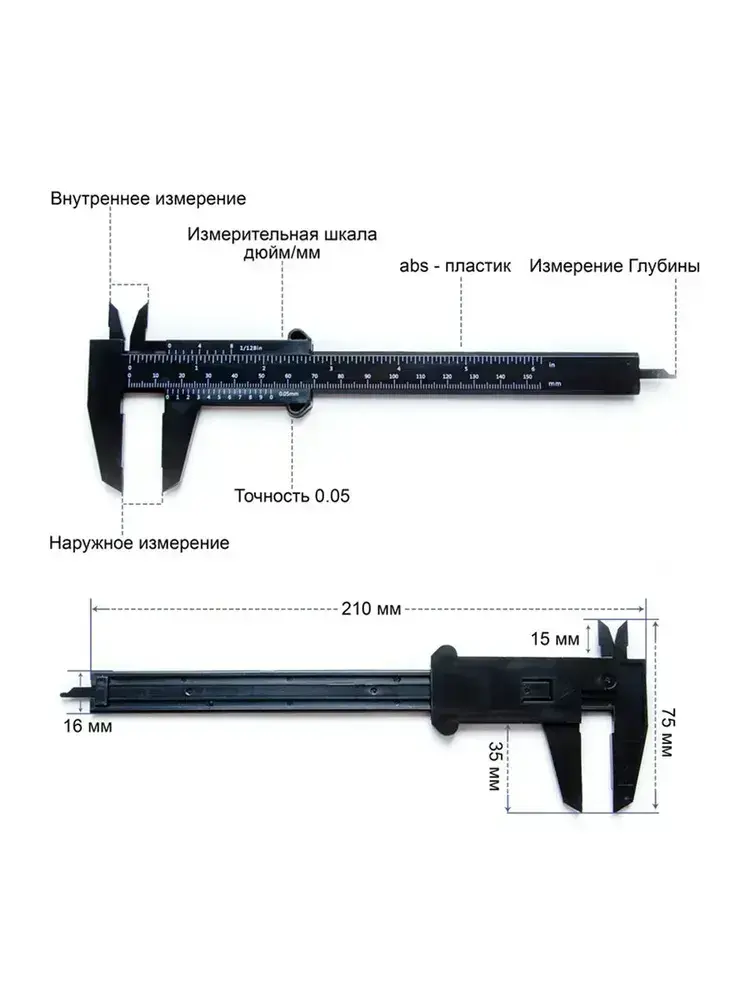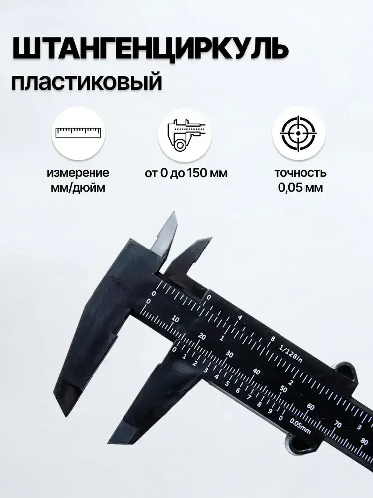 Штангенциркуль пластиковый, 150 мм, ABS пластик, черный/глубиномер/измерительный прибор