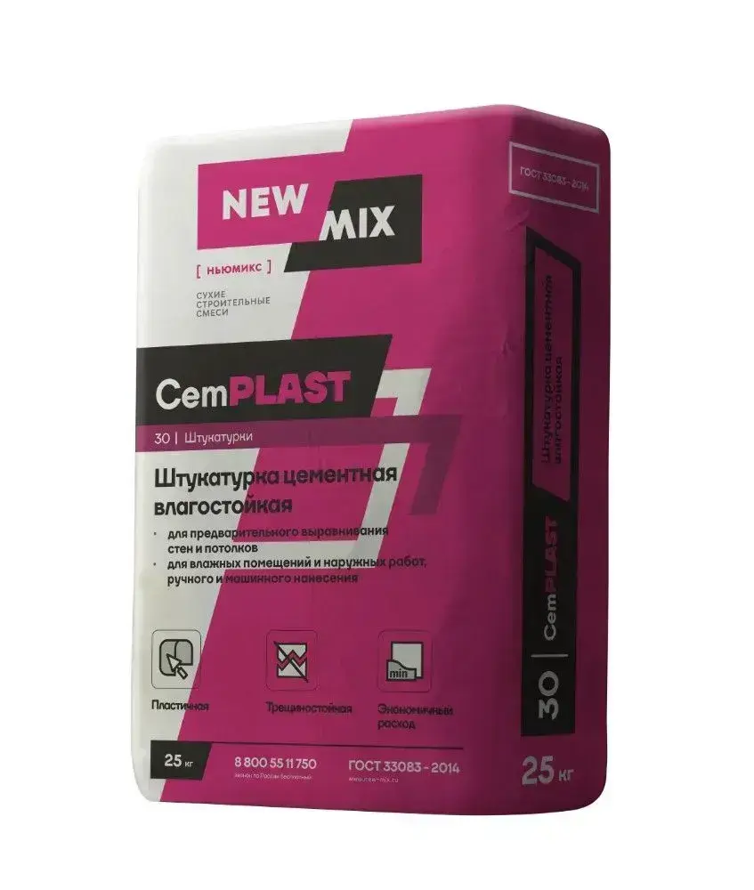 Штукатурка цементная влагостойкая CemPLAST 25 кг