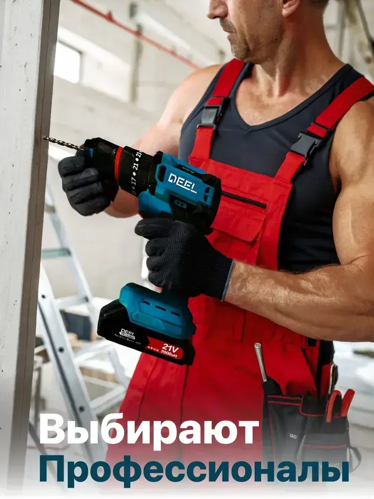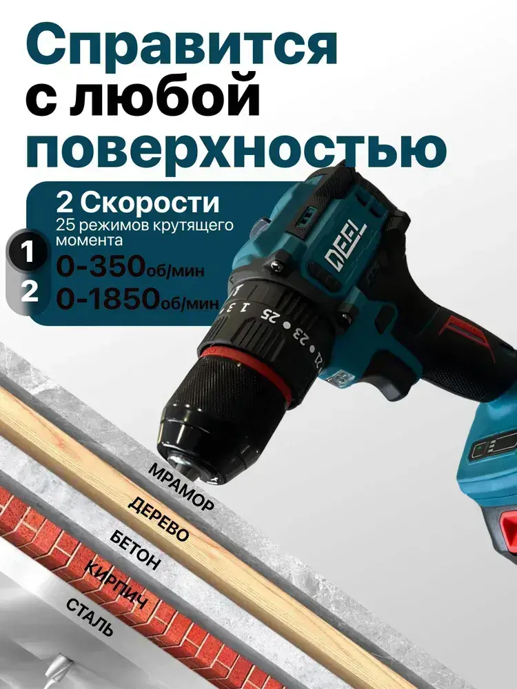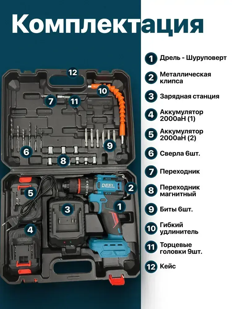 Шуруповерт аккумуляторный бесщеточный ударный дрель DEFL 21В, в кейсе, 2 АКБ 2 а/ч, многофункциональный 60 H/M для сверления, долбления, закручивания, шуруповерт для метала, синий