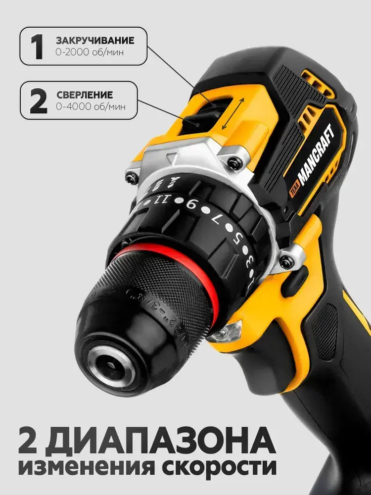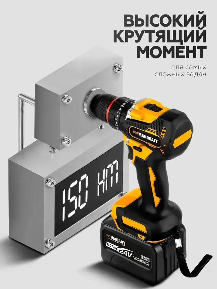Шуруповерт аккумуляторный / Дрель-шуруповерт MANCRAFT, 24 В, 150 Нм, 2 АКБ 4000 об/мин