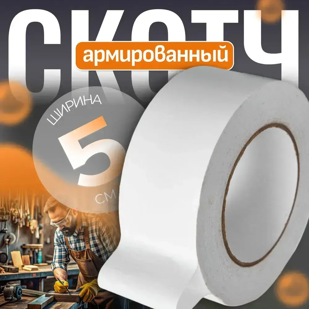 Скотч армированный / Армированный скотч белый / 5см 50м 1 шт