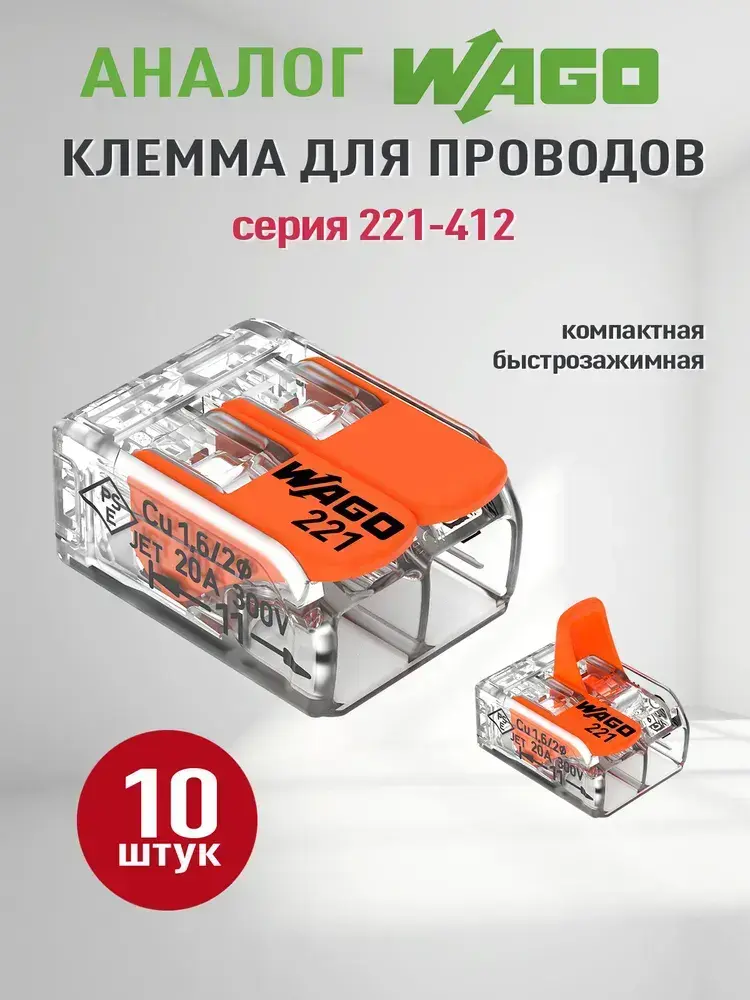 Соединительные клеммы Wago (Аналог Wago) для проводов, ваги 221-412, 10шт