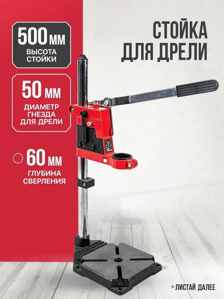 Стойка для дрели P.I.T. P0010001, диаметр 50 мм, глубина 60мм, ограничитель, литое основание