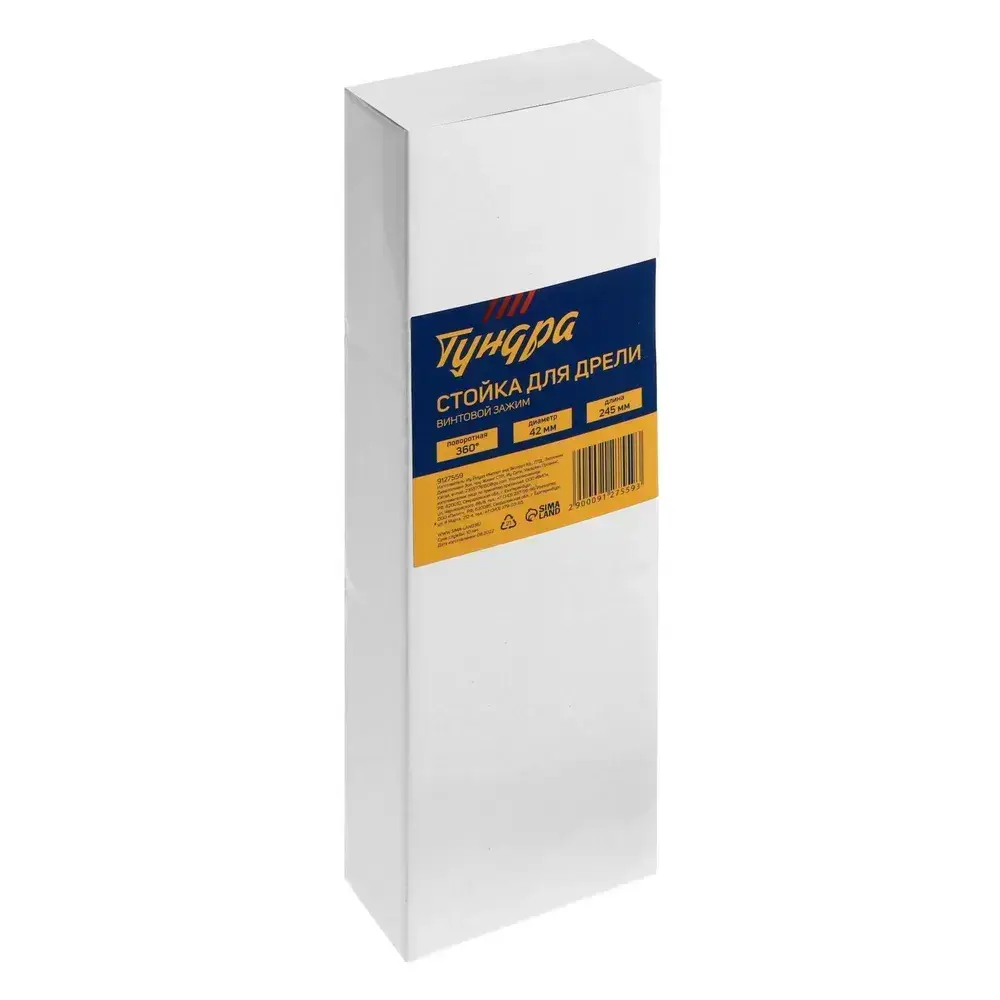 Стойка для дрели ТУНДРА, винтовой зажим, поворотный шарнир 360, d42 мм, длина 245 мм