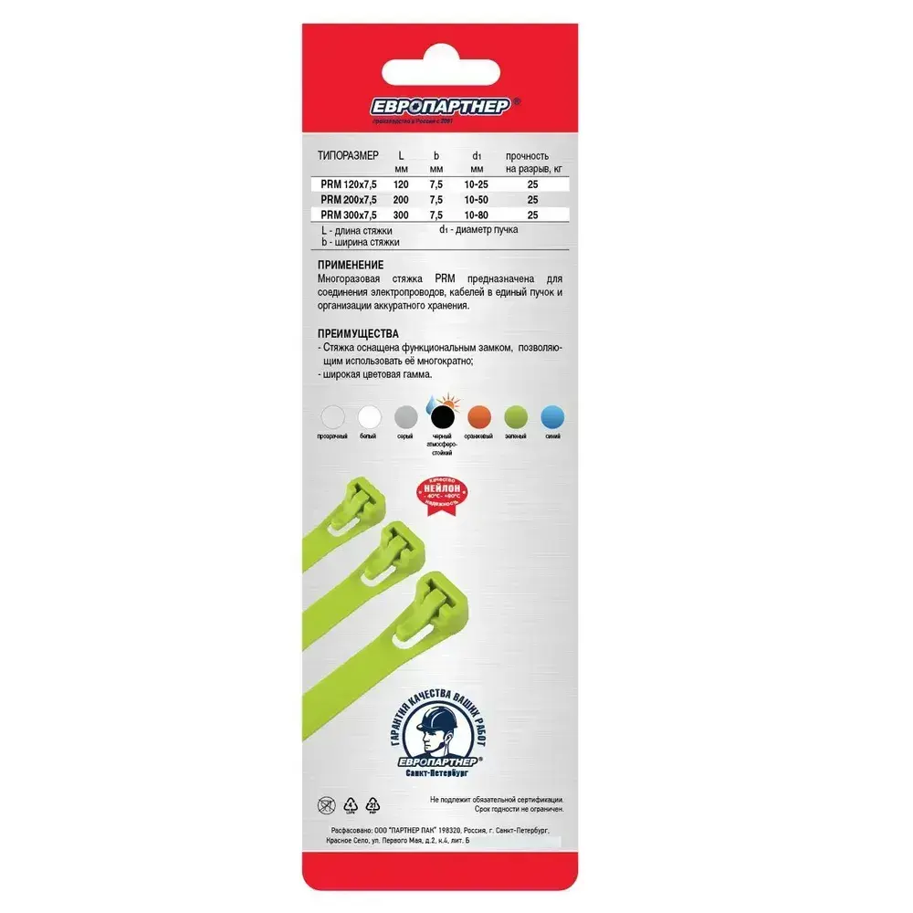 Стяжка пластиковая многоразовая нейлон 120х7,5мм черная PRM Европартнер (20шт.)