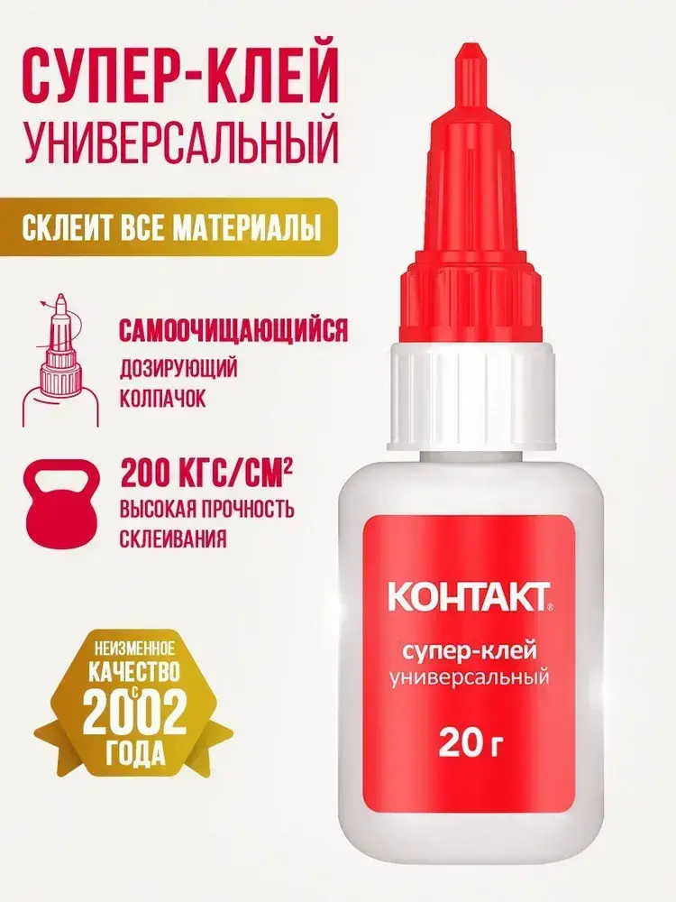 Супер клей КОНТАКТ Универсальный, прозрачный 20 г.