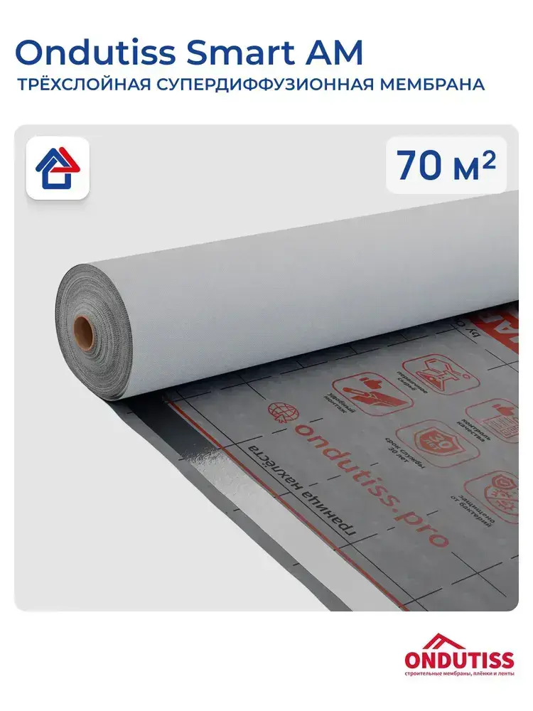 Супердиффузионная мембрана Ондутис Смарт АМ 70м2 гидроизоляция Ondutiss Smart AM