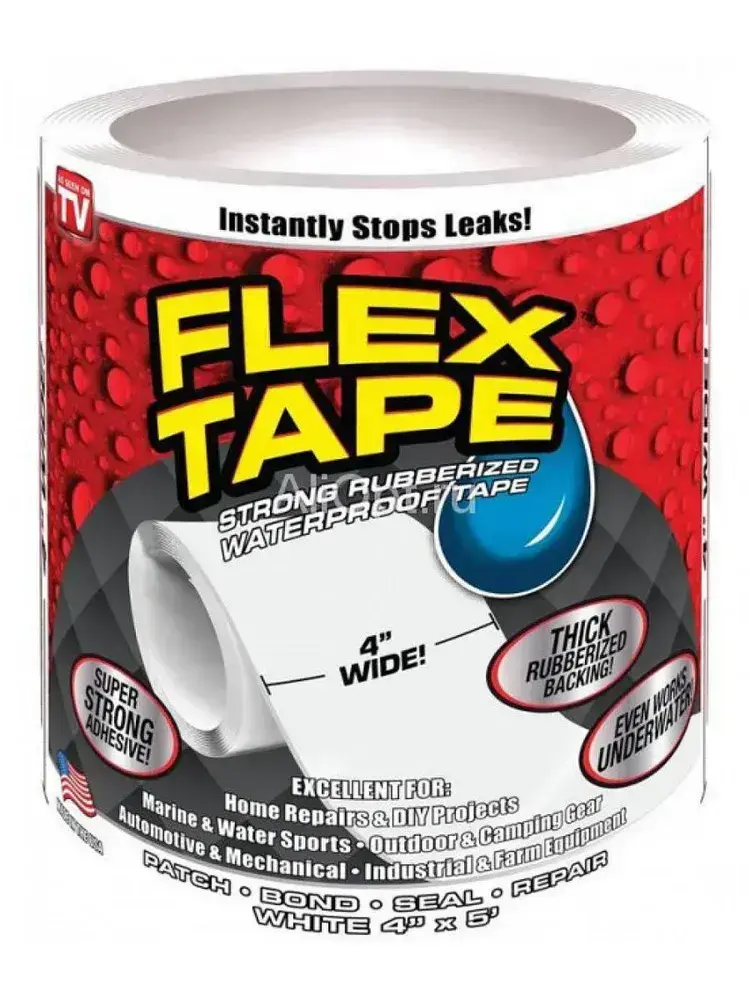 Сверхсильная клейкая водонепроницаемая лента, скотч для бассейнов и труб Flex Tape, белый