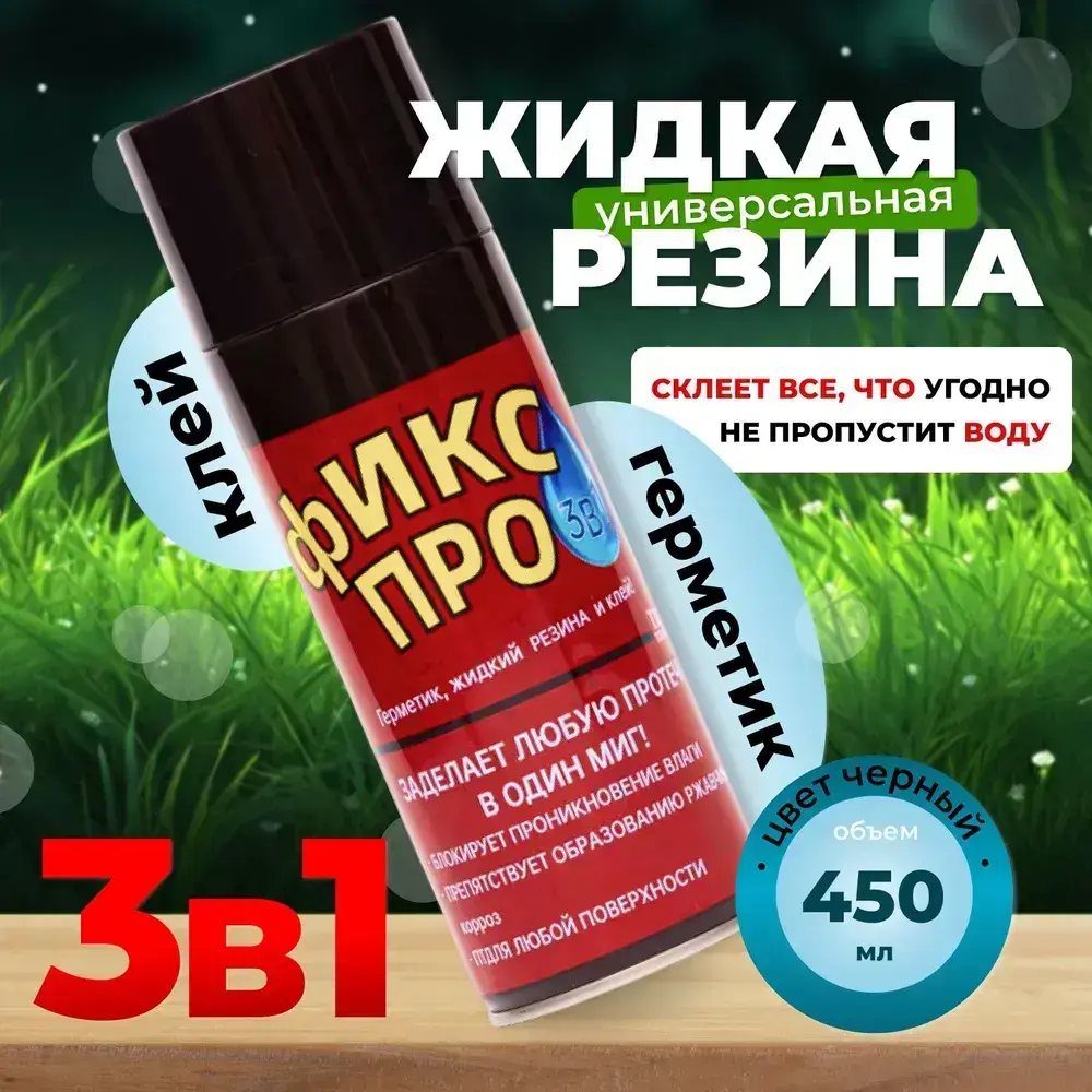 Сверхсильная Жидкая резина герметик Фикс Про 3в1,черный / Жидкая резина в баллончике 3 в 1, герметик, клей