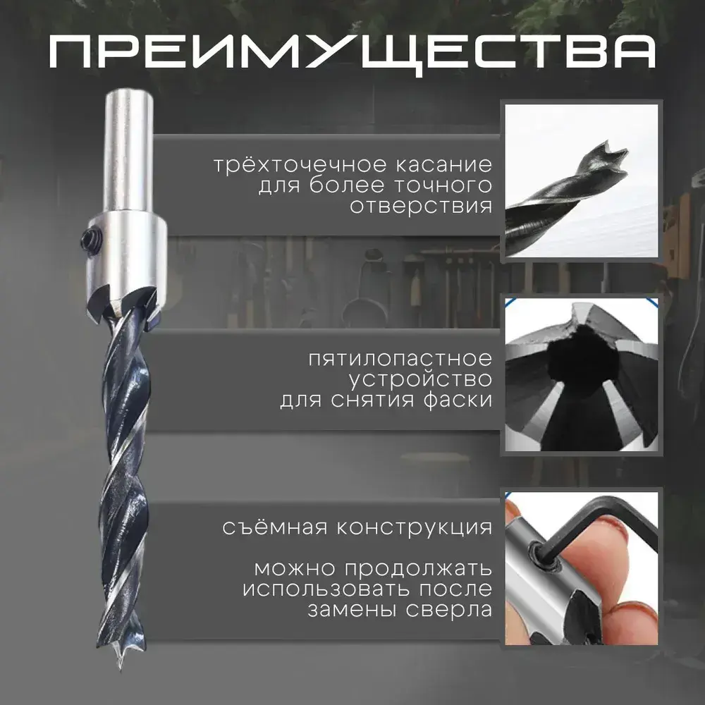 Сверла с зенкером по дереву Набор 7 шт. (3мм, 4мм, 5мм, 6мм, 7мм, 8мм, 10мм)
