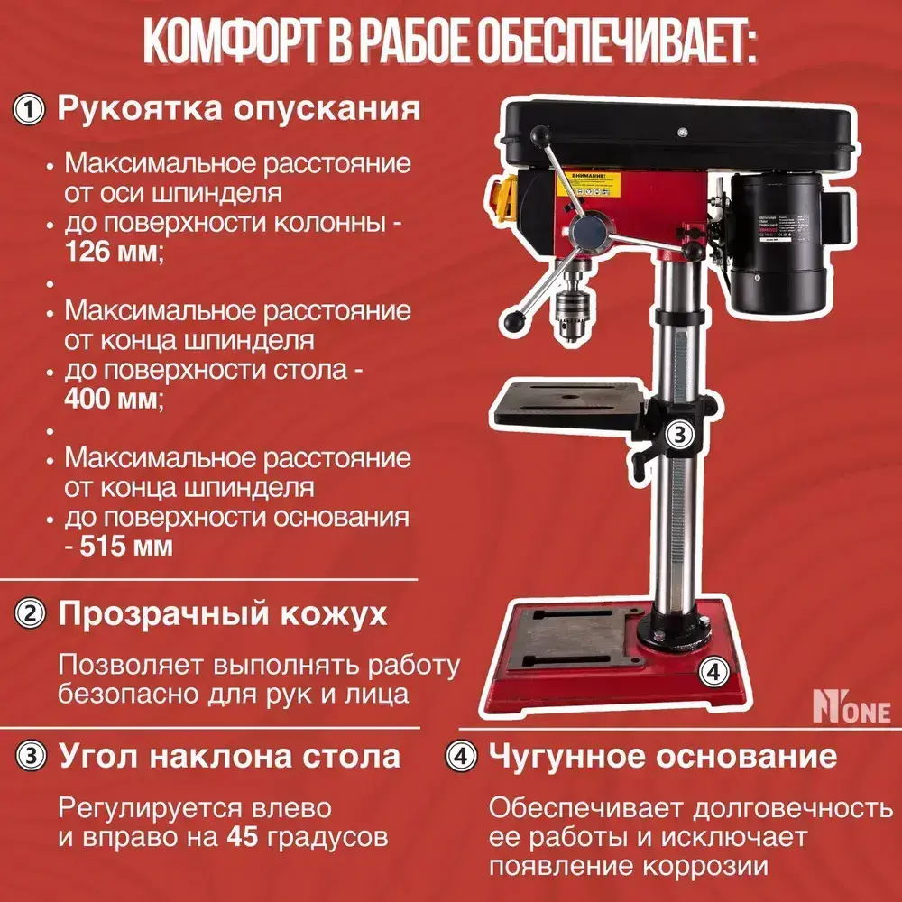 Сверлильный станок стационарный NUMBER ONE NBM 850S (850Вт,12 скоростей,16мм,220-2450об/мин)+тиски №1