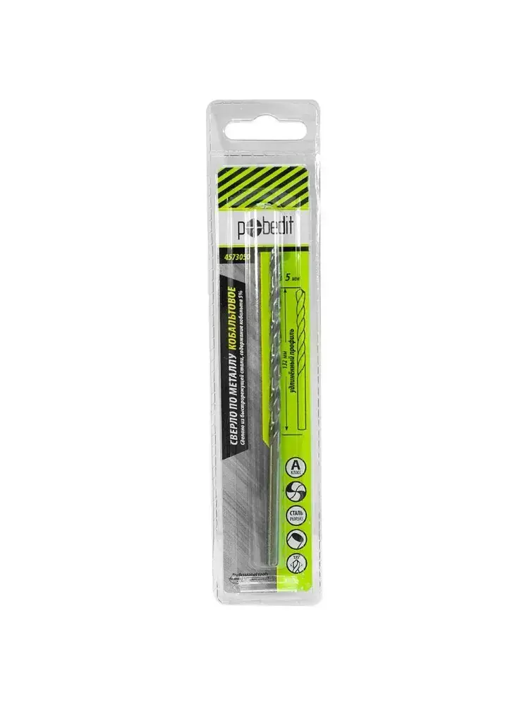 Сверло по металлу удлинённое 5 х 132 мм Р6М5К5 Pobedit