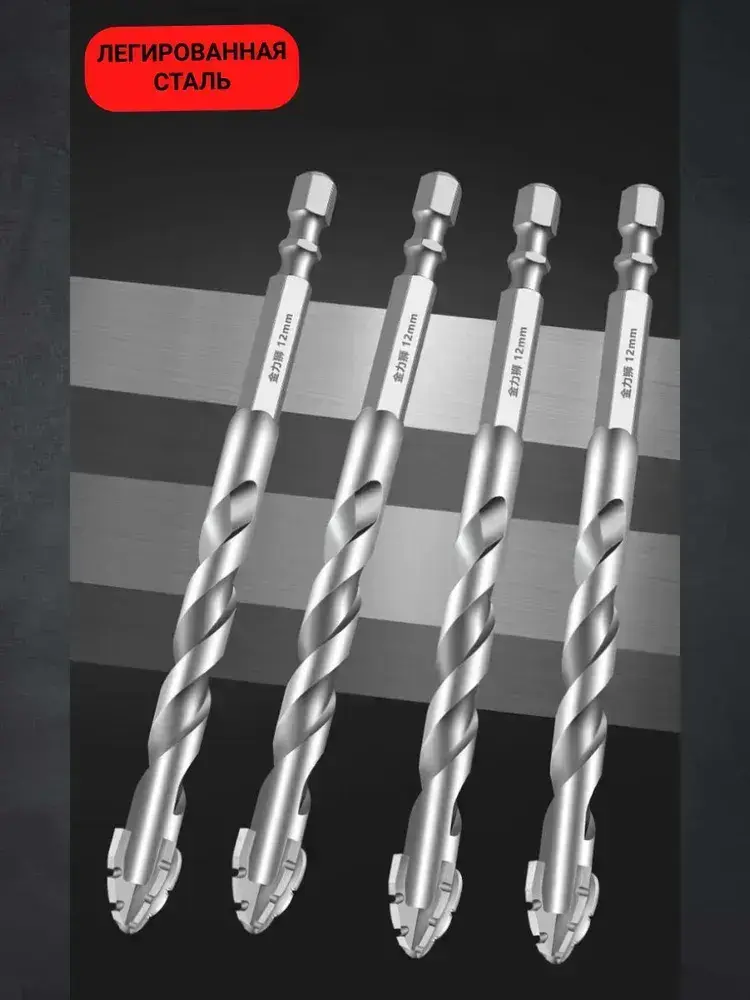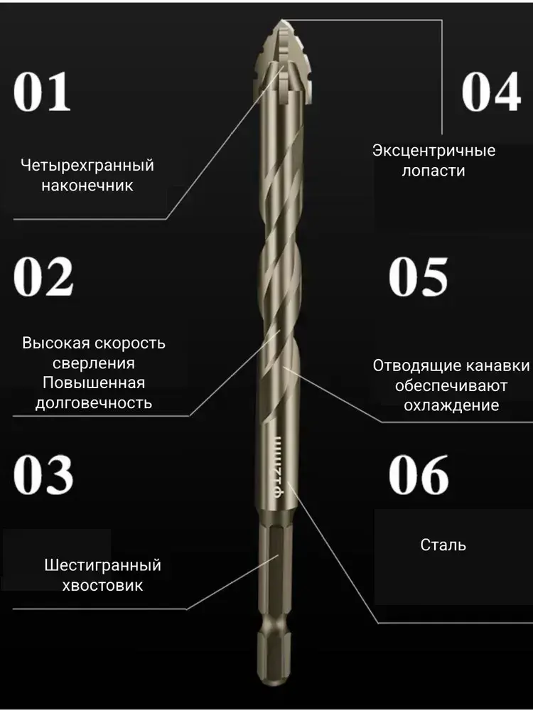 Сверло высокой твердости универсальное 6мм 4-х лопастное мрамор бетон металл стекло дерево