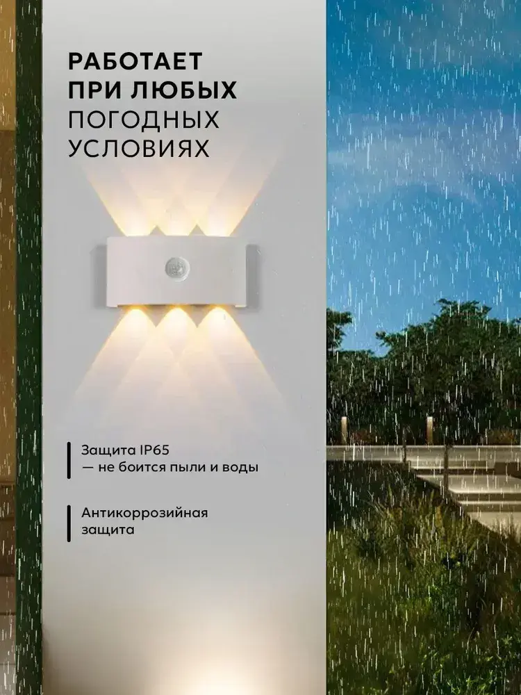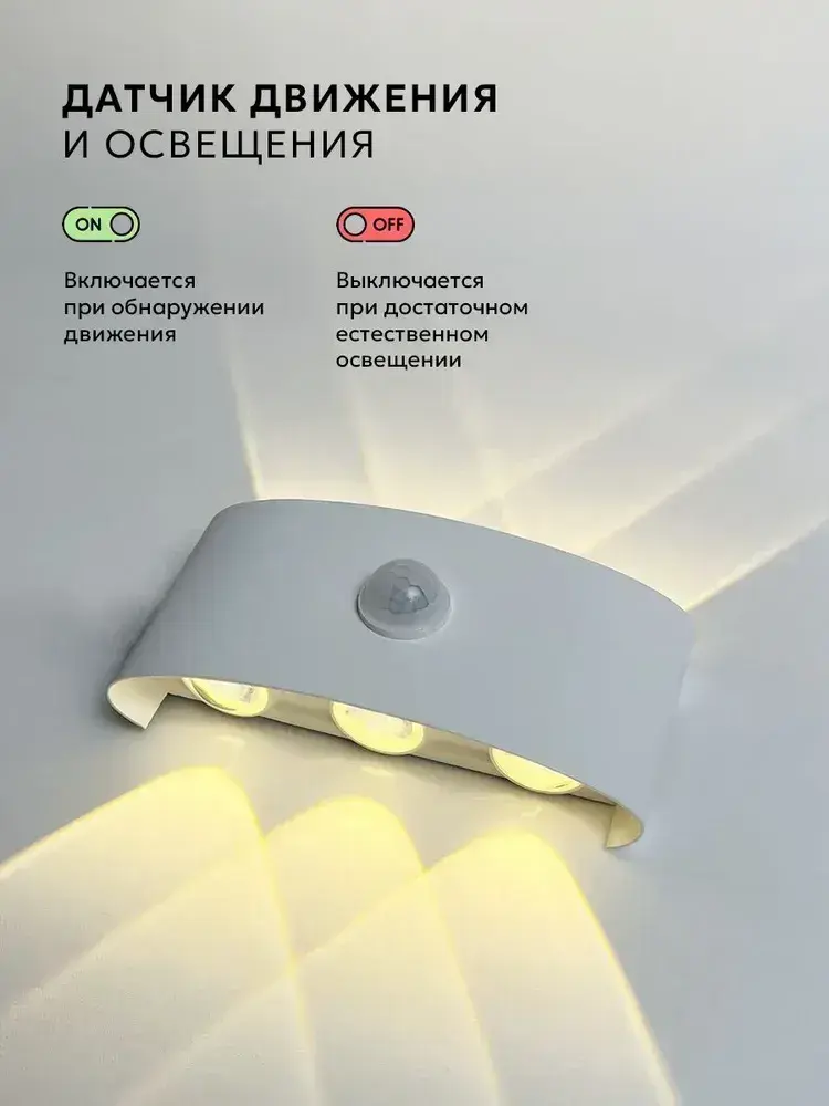 Светильник бра настенный светодиодный уличный с датчиком движения и датчиком освещенности 220в OutFrame 3000K, 6Вт, белый