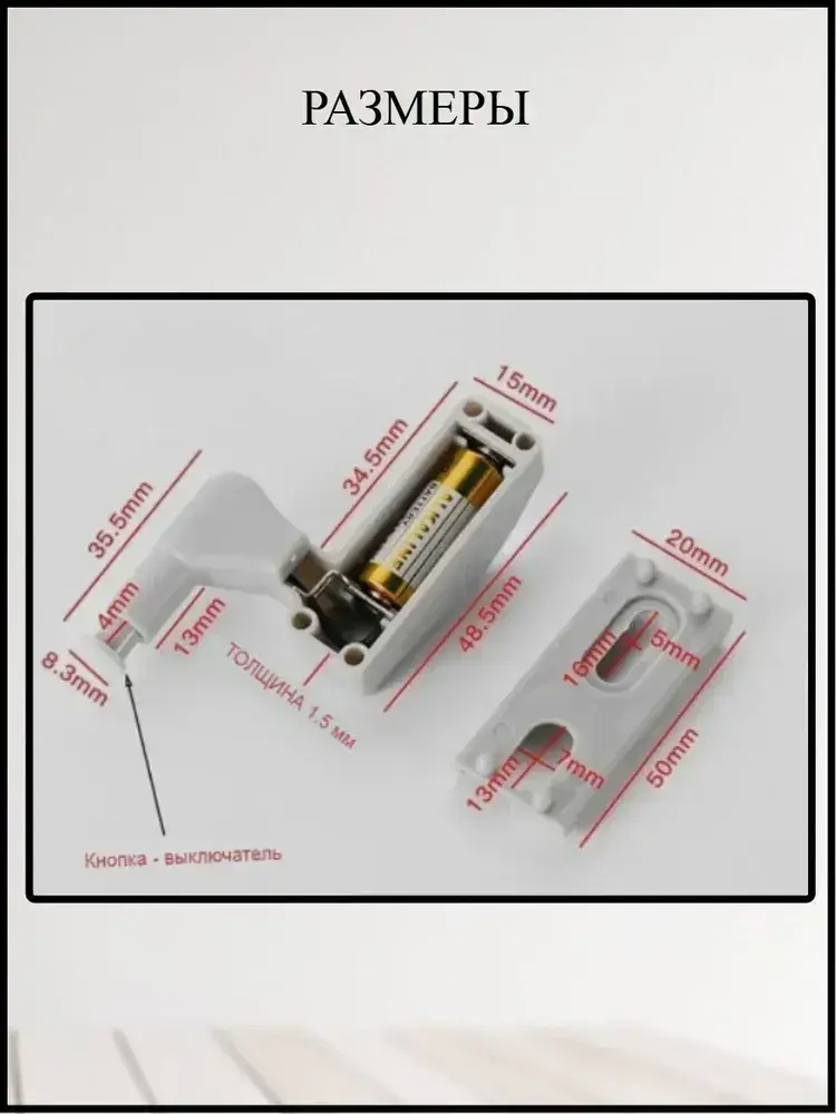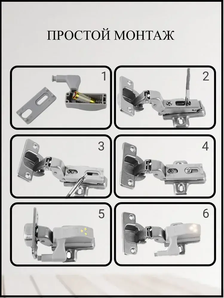 Светильник на мебельную петлю, подсветка для шкафа, нейтральный свет, на батарейках 8 шт