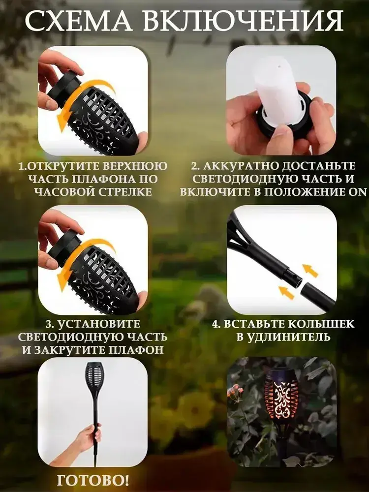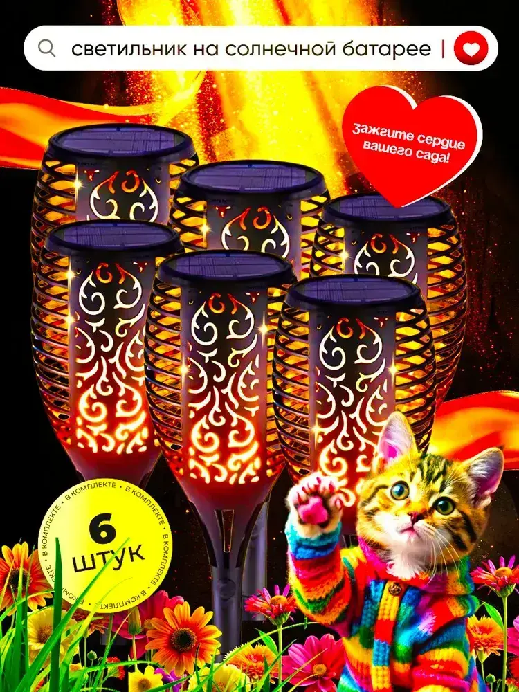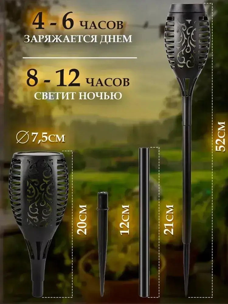 Светильник на солнечной батарее уличный Горящий Факел 52см - 6 шт, светодиодный для дома, дачи и сада.