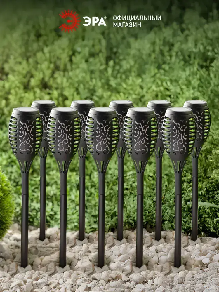 Светильник на солнечной батарее уличный напольный ландшафтный ЭРА ERASF020-33-М факел 49,5 см, 10 шт