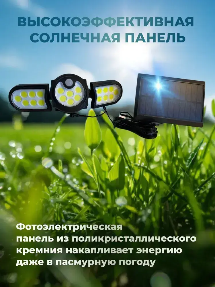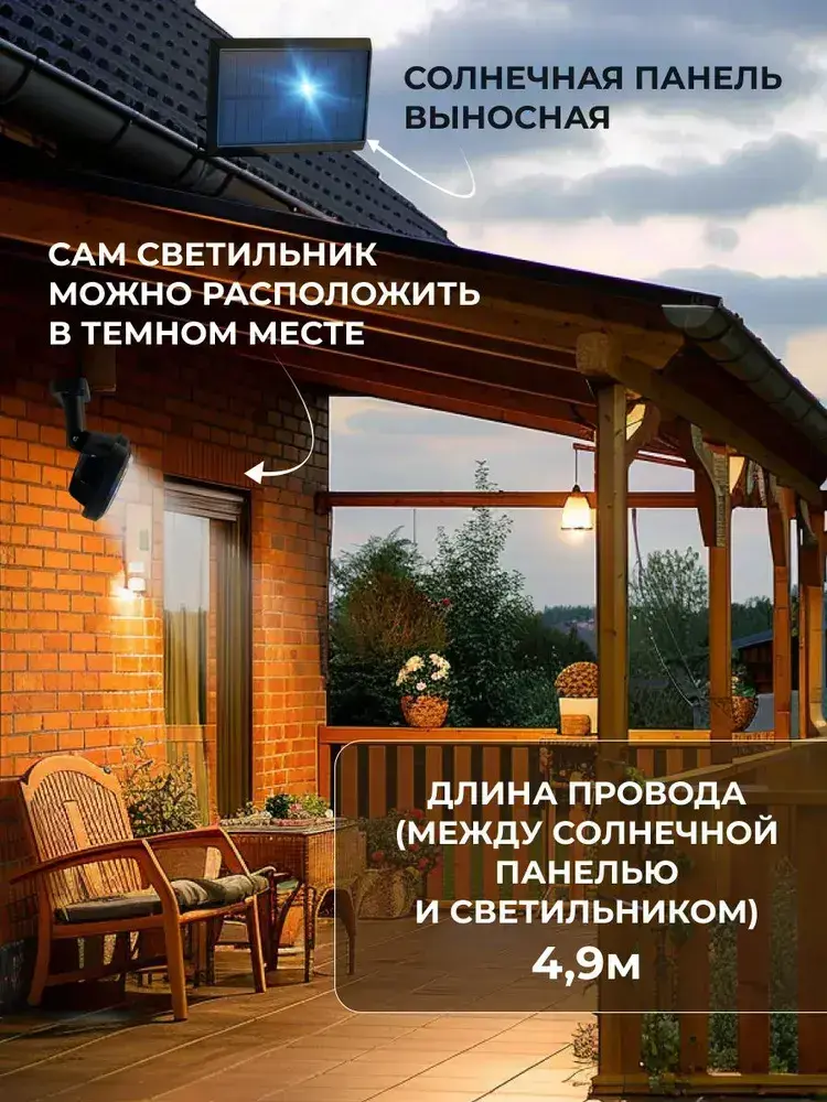 Светильник на солнечной батарее уличный, с датчиком движения. Прожектор светодиодный с выносной солнечной панелью.