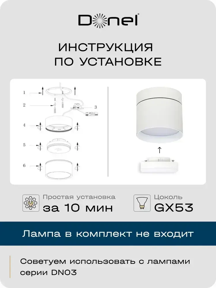 Светильник накладной поворотный Donel под лампу GX53 / Cпот потолочный, настенный, точечный DN02015R1W