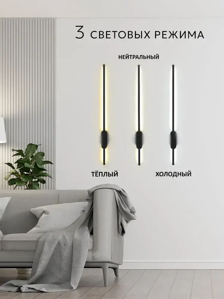 Светильник настенный светодиодный черный, 100см, 21W, бра настенный OutFrame, три режима