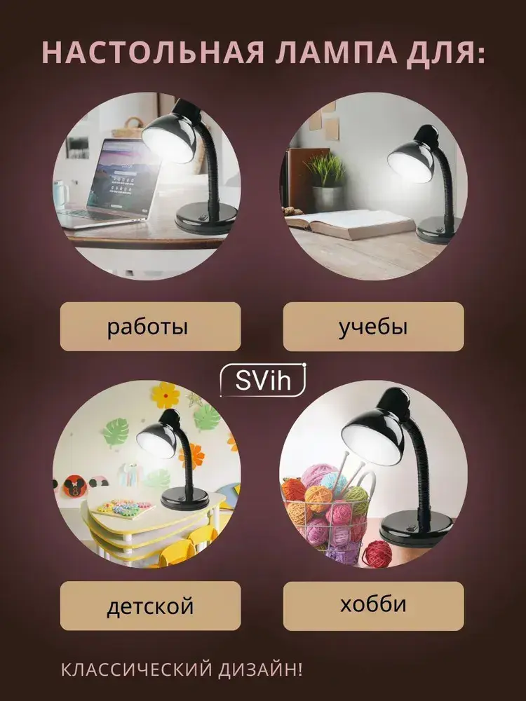 Светильник настольный для школьника настольная лампа офисная для работы, чтения, детей, офиса, школы, учебы, черный цвет