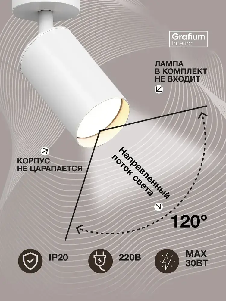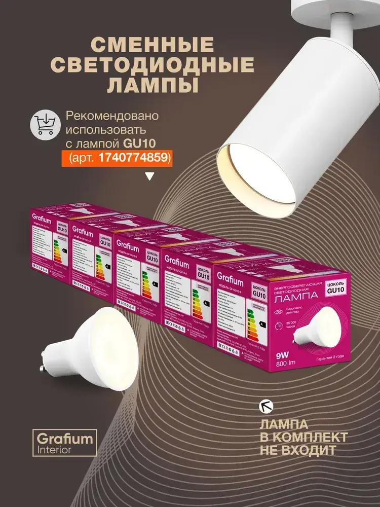 Светильник потолочный настенный GU10 светодиодный белый/ спот поворотный точечный Grafium Interior