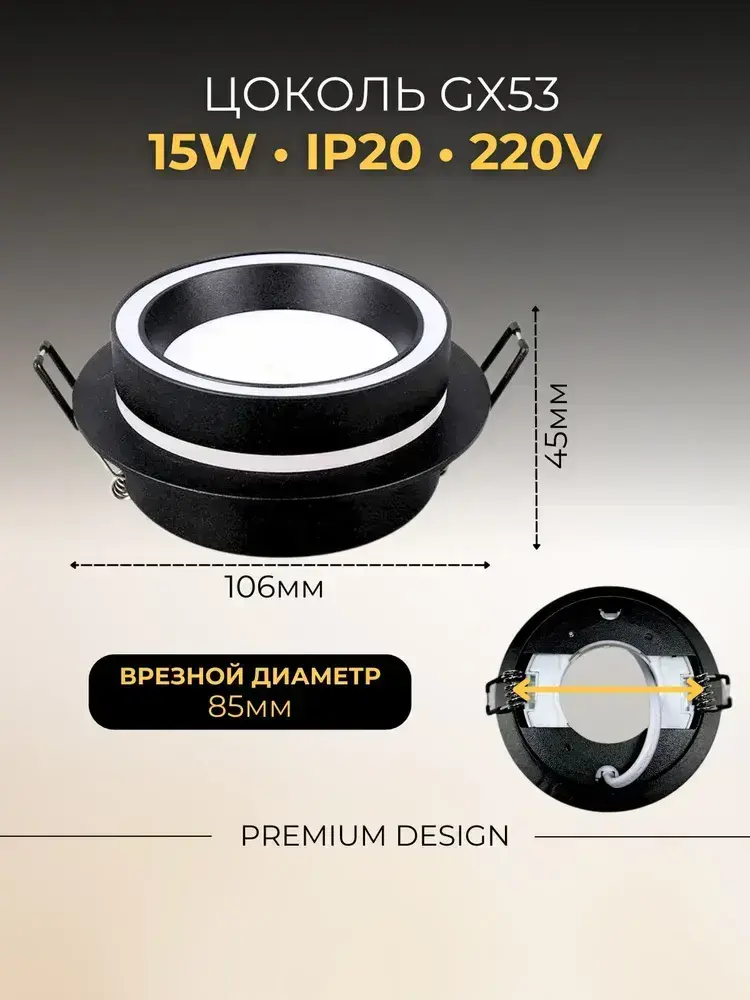 Светильник потолочный встраиваемый для натяжных потолков Юпитер черный GX53