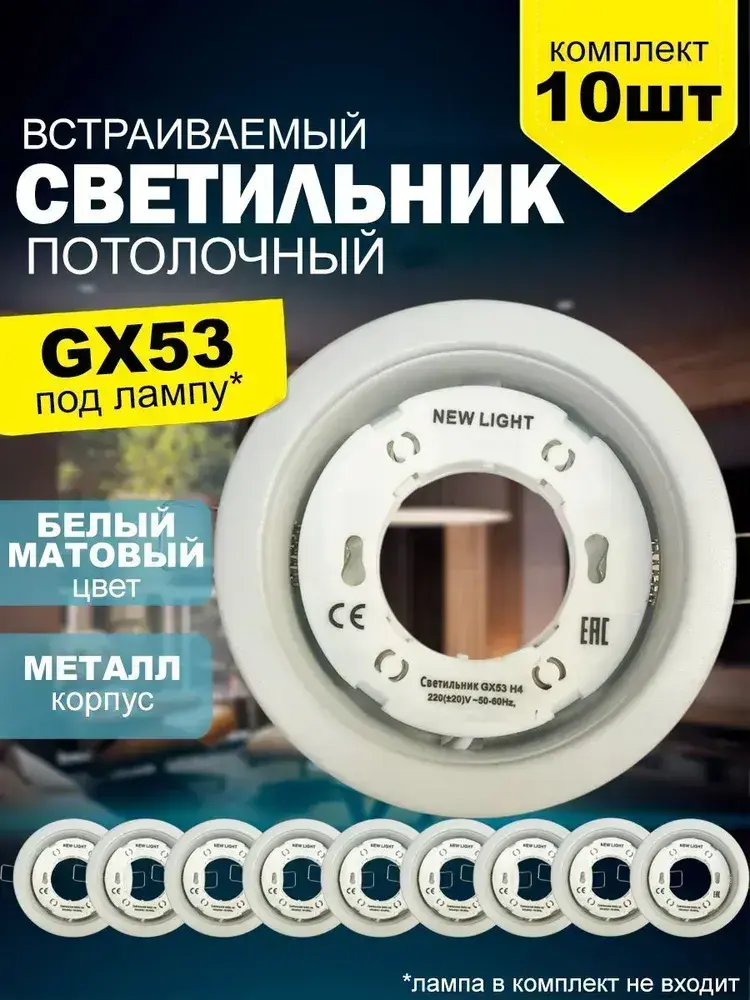 Светильник потолочный встраиваемый металл GX53, белый матовый / для натяжного и гипсокартонного потолка/ комплект 10шт