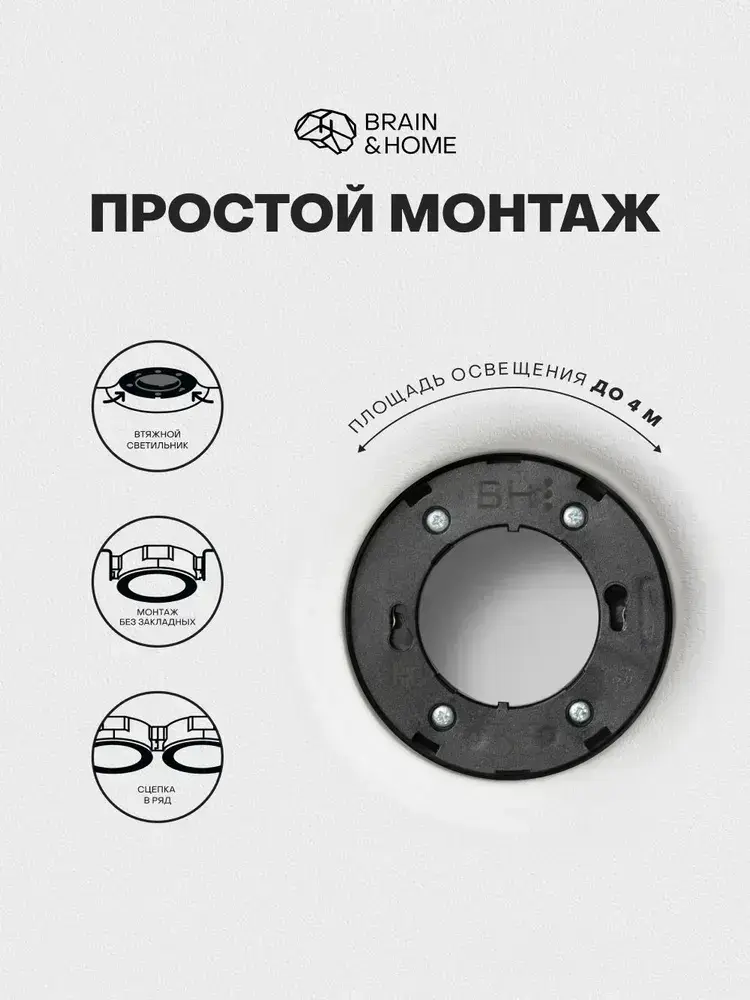 Светильник потолочный встраиваемый ВН53, Черный цоколь
