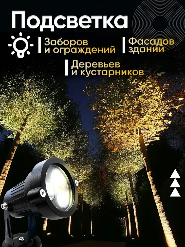 Светильник садовый для архитектурного и ландшафтного освещения 220V 3W 3000К теплый белый, угол 30 градусов, низковольтный прожектор на фасад дома
