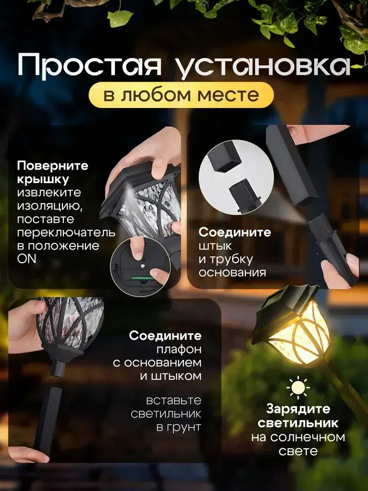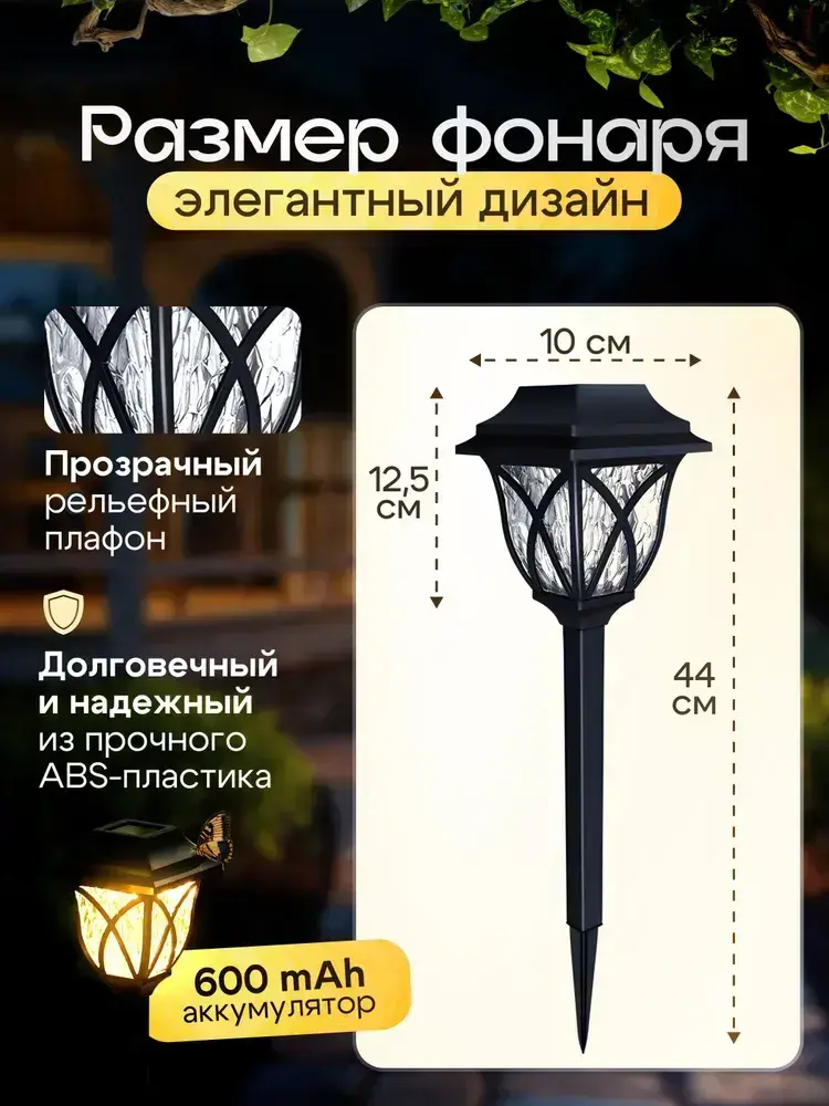 Светильник садовый на солнечной батарее уличный / фонарики садовые под старину /теплый свет
