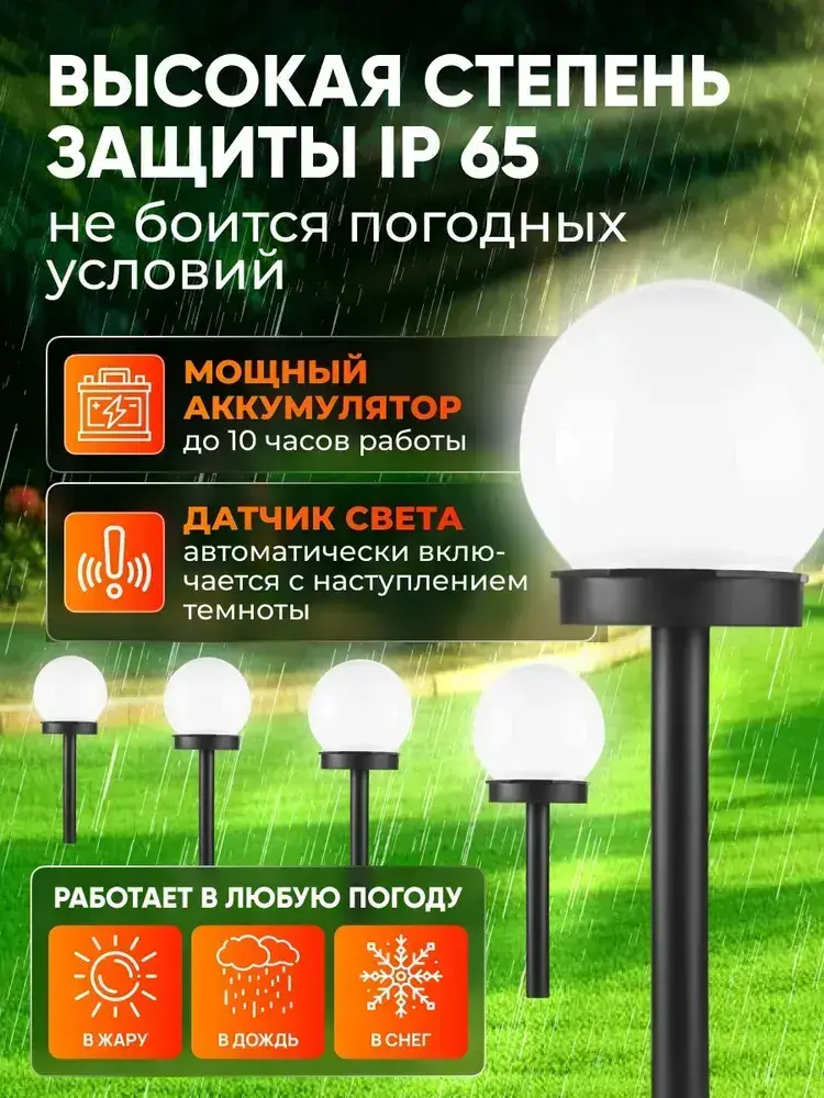 Светильник ШАР уличный на солнечной батарее 8 шт, белое свечение для ландшафта