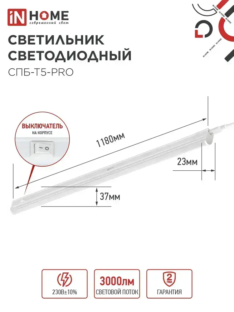 Светильник светодиодный 30Вт 4000К 3000Лм 1200мм СПБ-Т5-PRO IN HOME