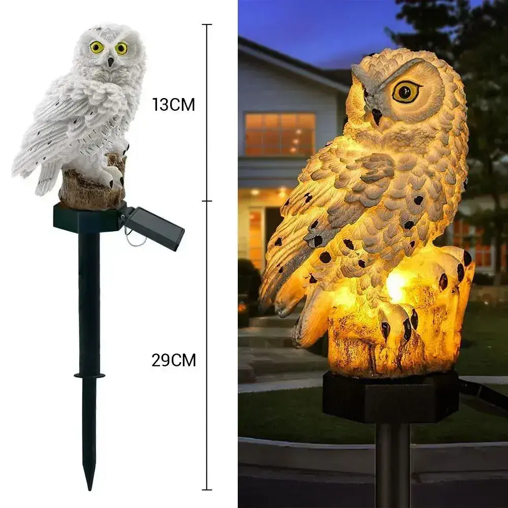 Светильник уличный на солнечной батарее Сова Филин белая для украшения дачи и сада