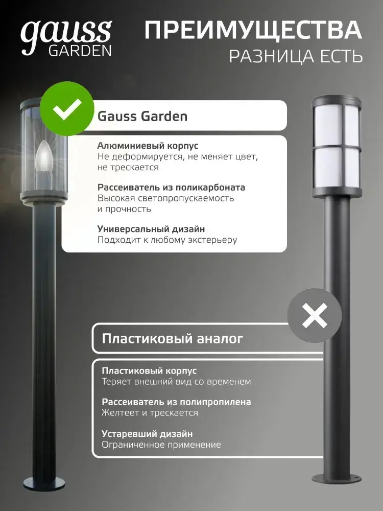 Светильник уличный напольный столб под лампу Е27, 105*800мм IP54 Gauss Vega