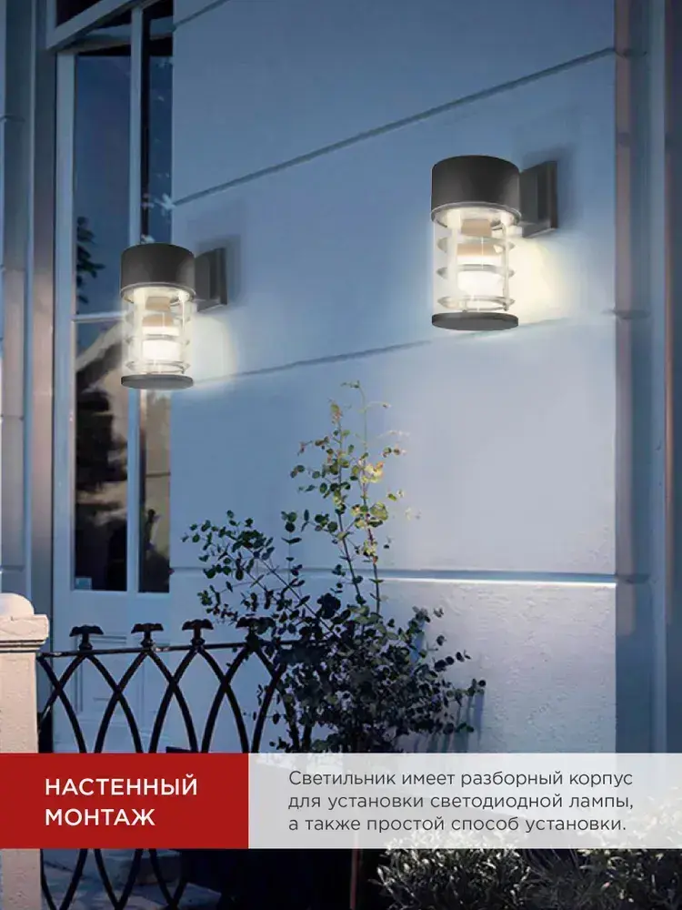 Светильник уличный настенный архитектурный фасадный односторонний НБУ ART-1хA60-BL алюминиевый под лампу 1хA60 E27 230B черный IP65 IN HOME