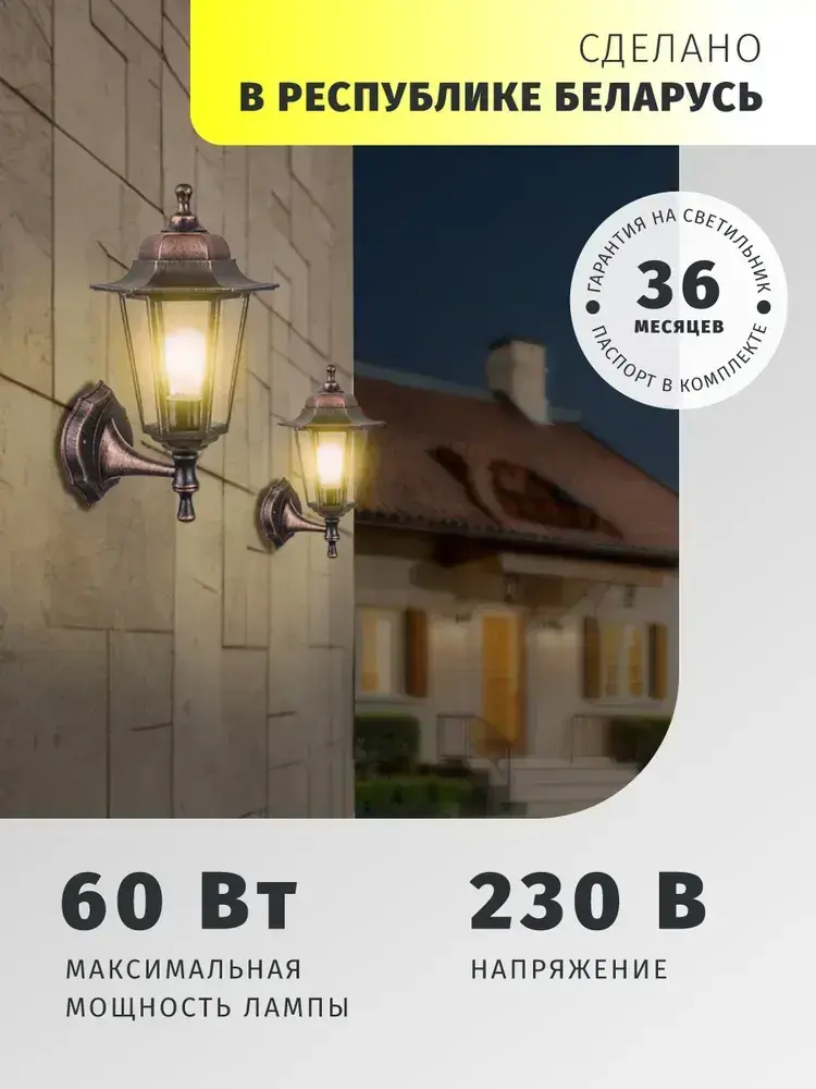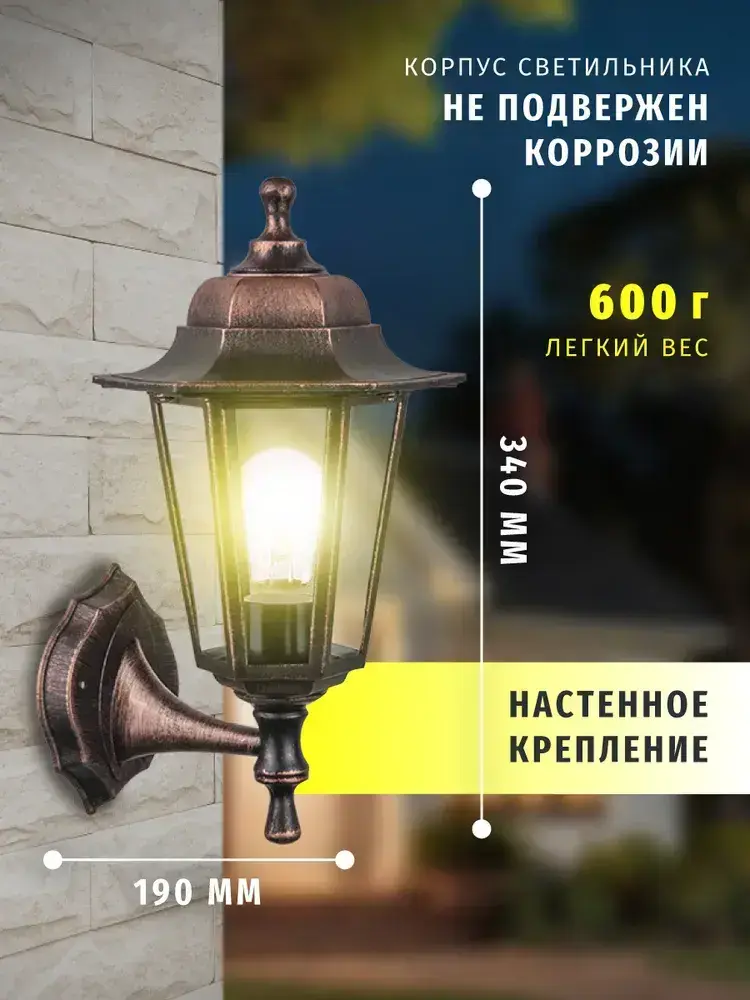 Светильник уличный настенный Navigator 80 495, 6 граней, цоколь E27, IP44, черный под медь
