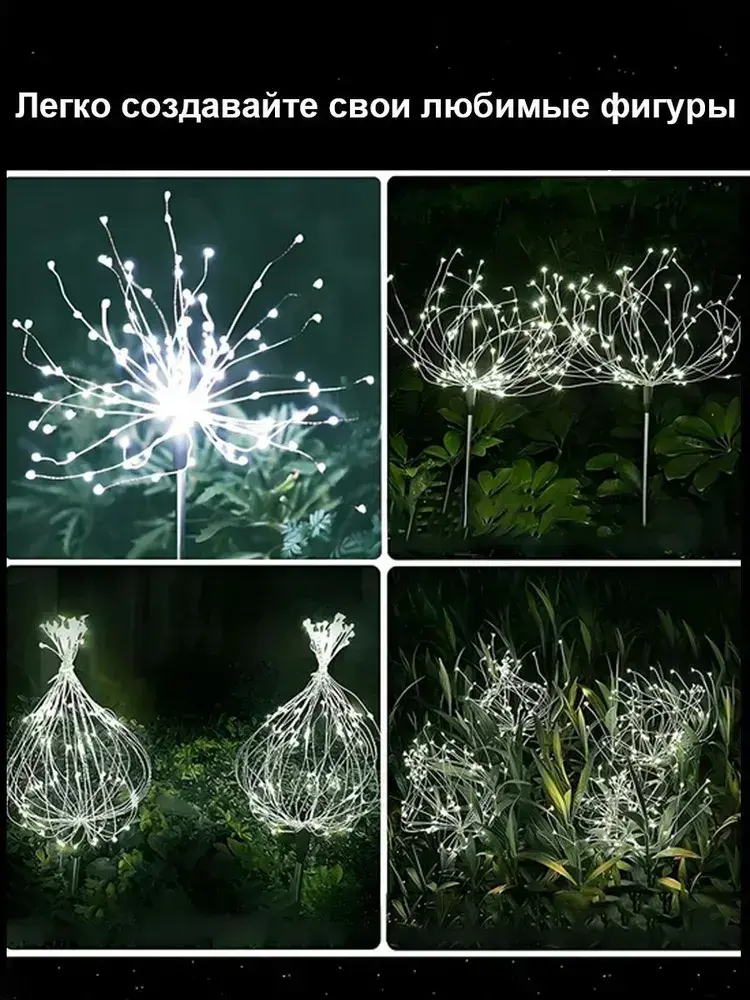 Светильник уличный садовый декор "Фейерверк" на солнечной батарее, 150 ламп, белый свет, 2шт