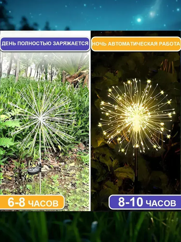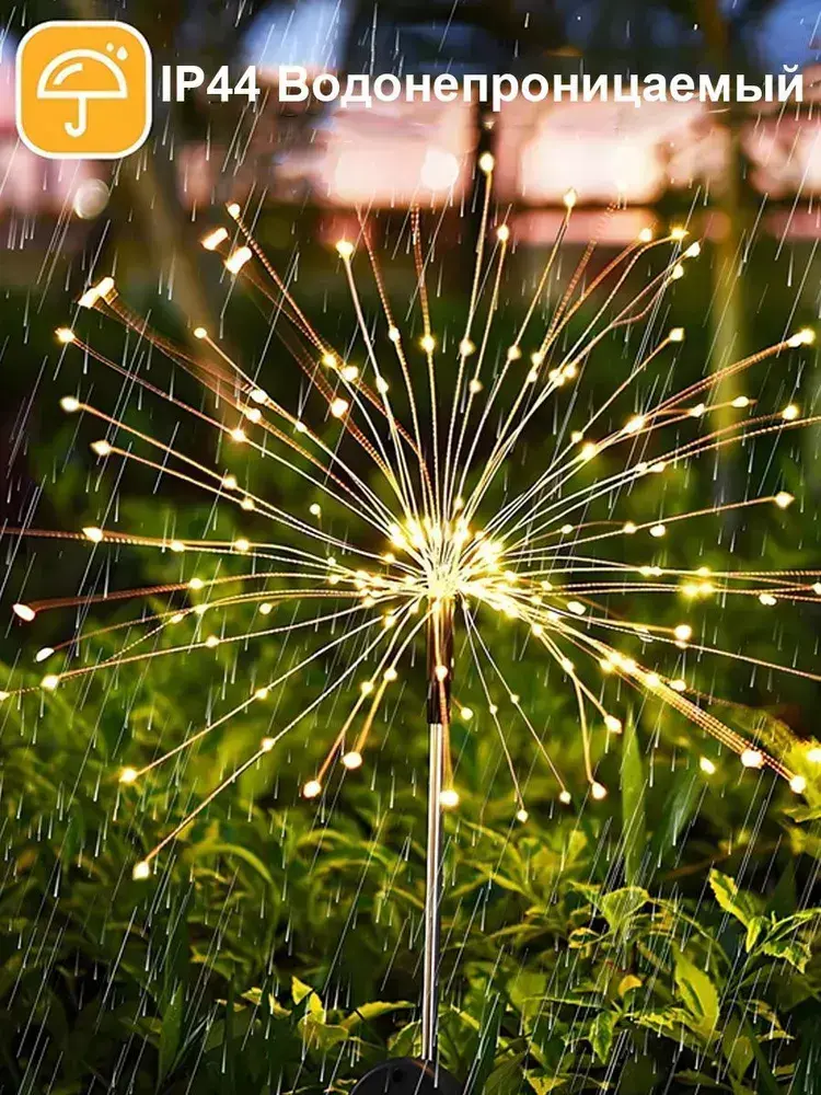 Светильник уличный садовый декор "Фейерверк" на солнечной батарее, 150 ламп, теплый свет, 2шт