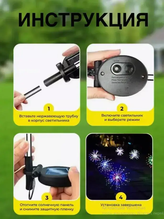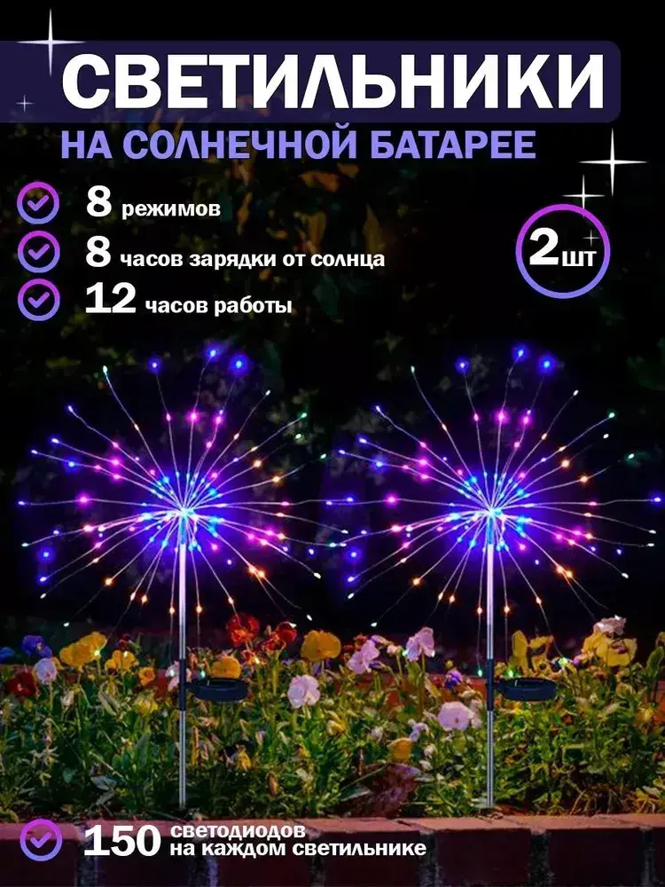 Светильник уличный садовый фейерверк одуванчик 2шт на солнечной батарее цветные