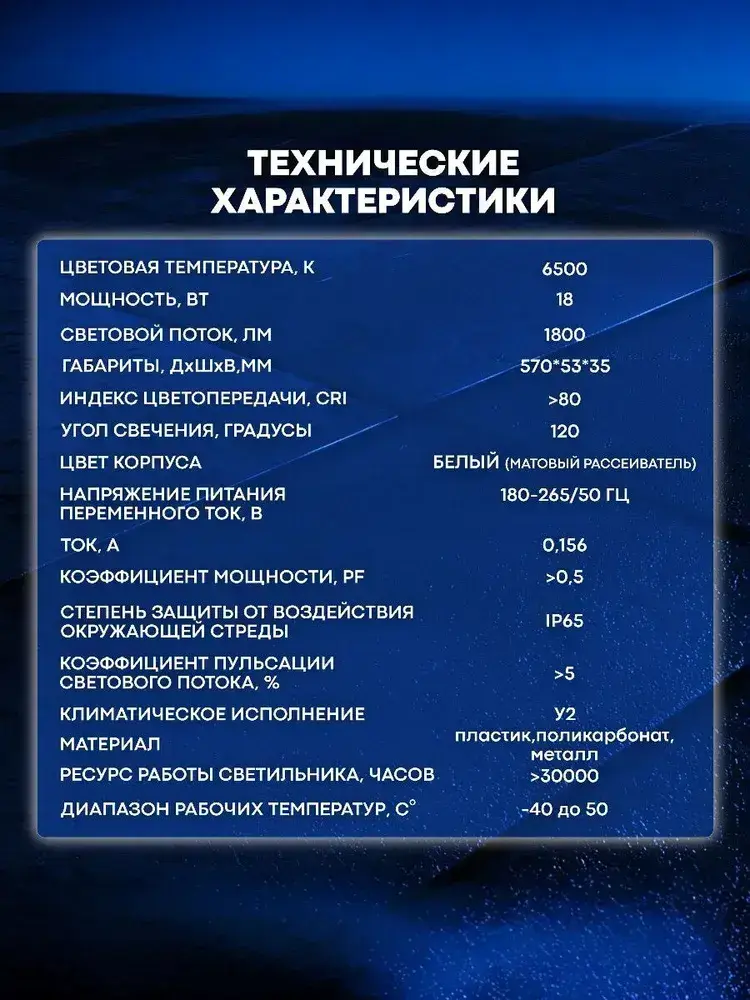 Светильник влагозащищенный линейный светодиодный уличный настенно потолочный 600мм 18W 6500K IP65