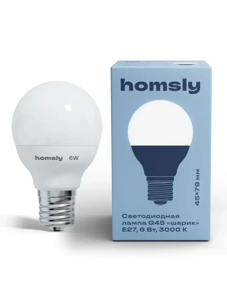 Светодиодная лампа G45 "шарик" E27 6Вт, 3000K