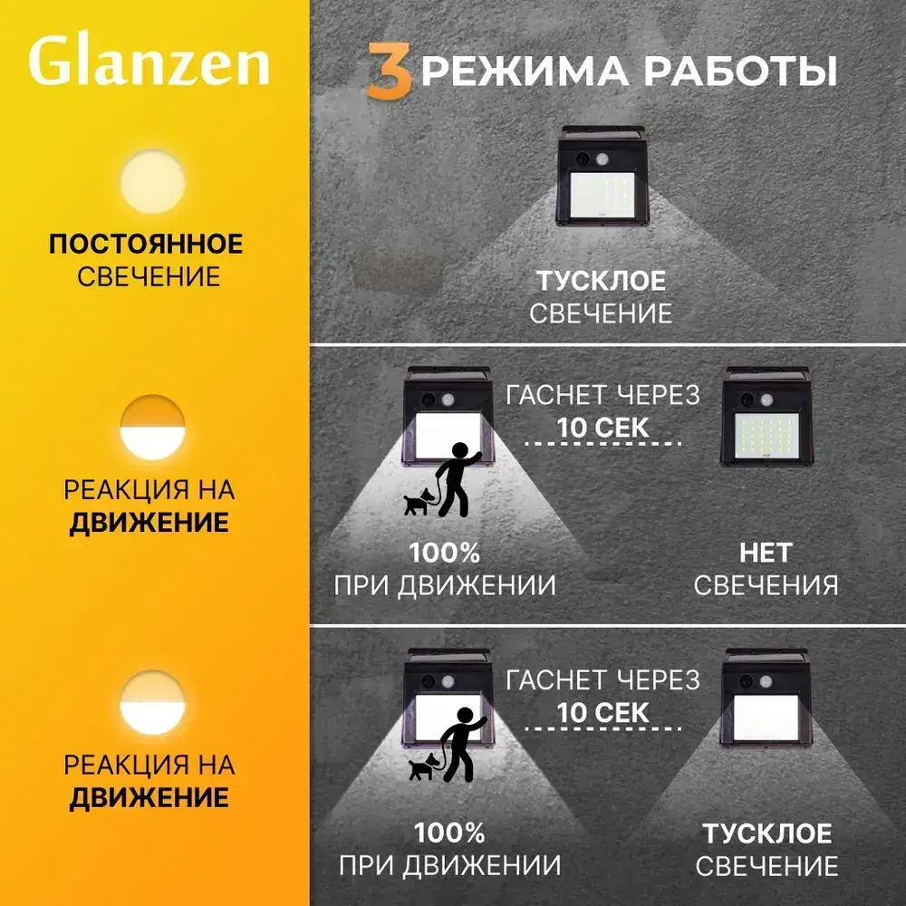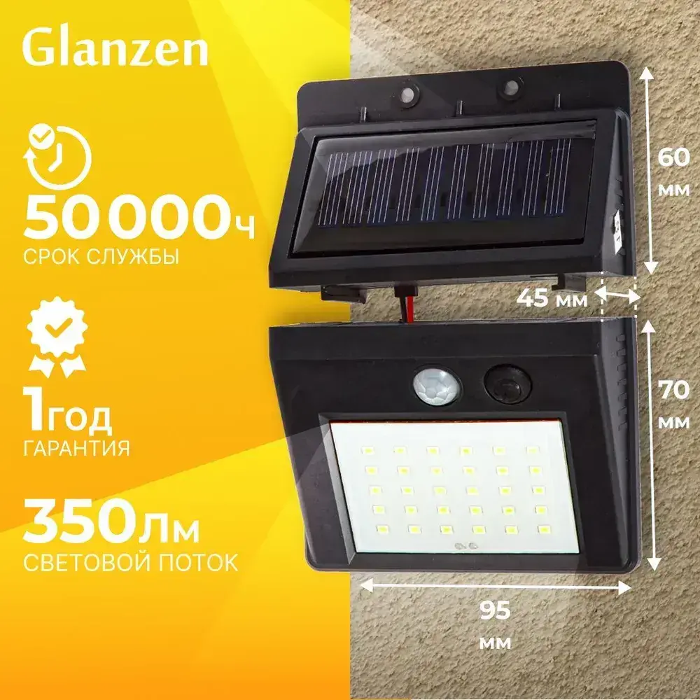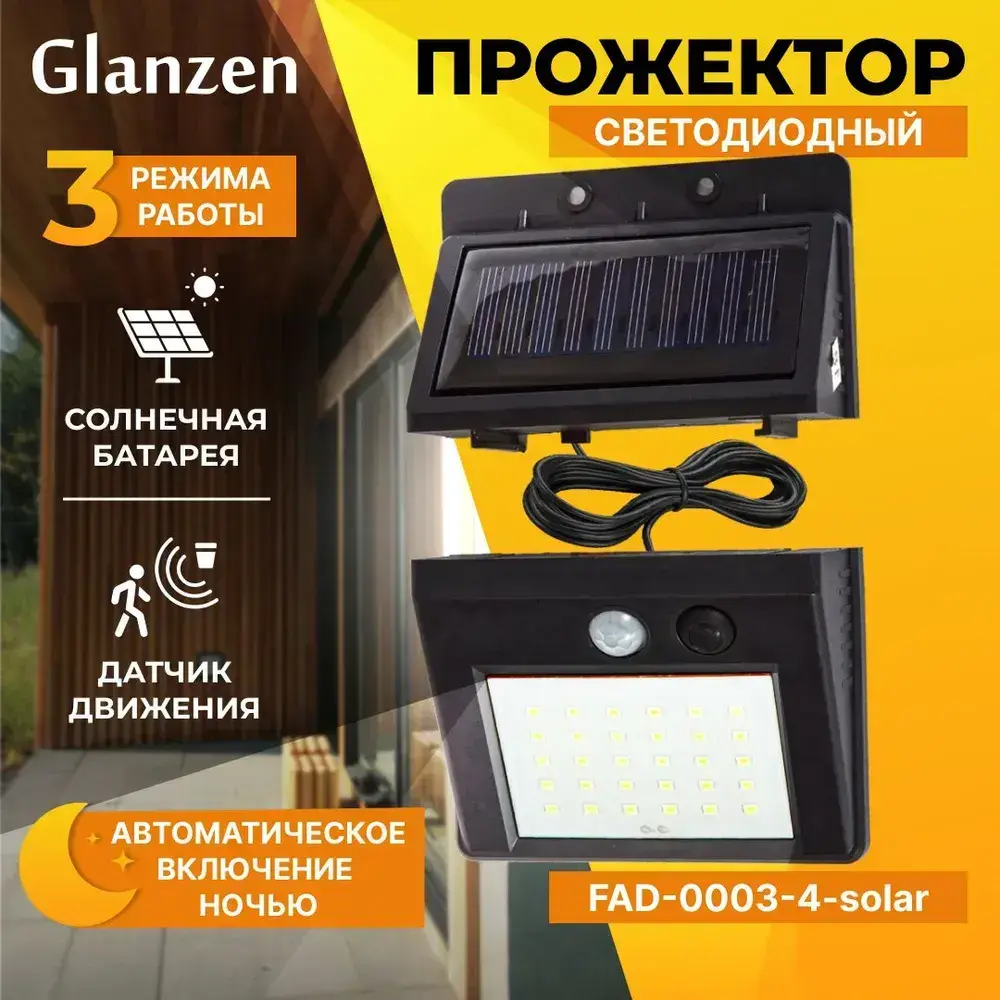 Светодиодный уличный прожектор на солнечных батареях и датчиком движения GLANZEN FAD-0003-4-solar
