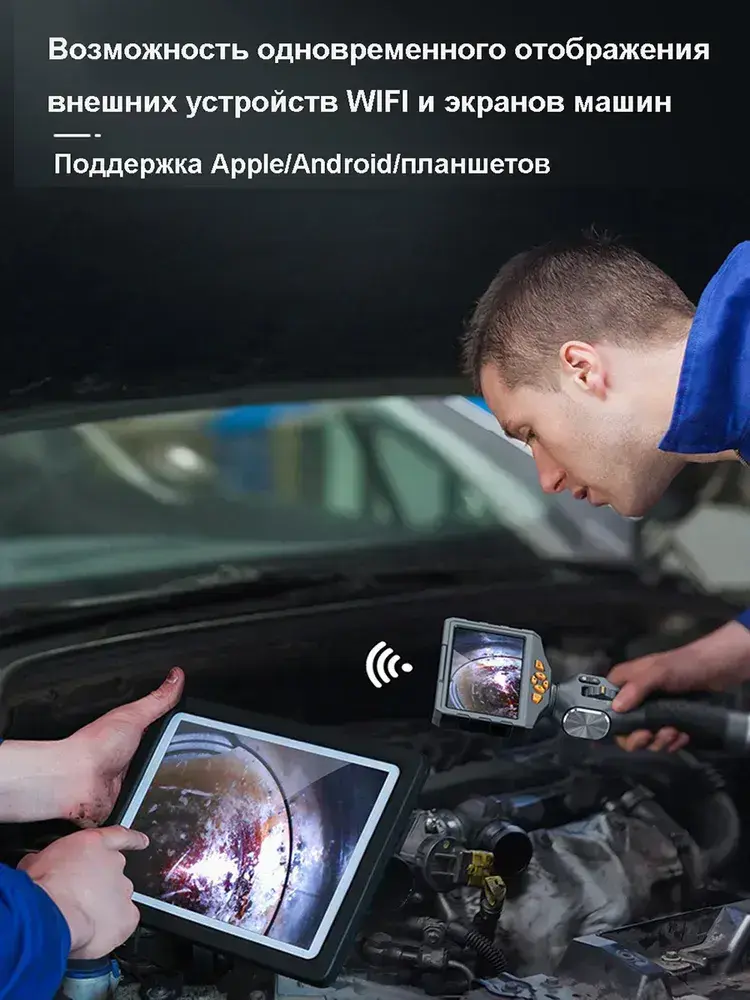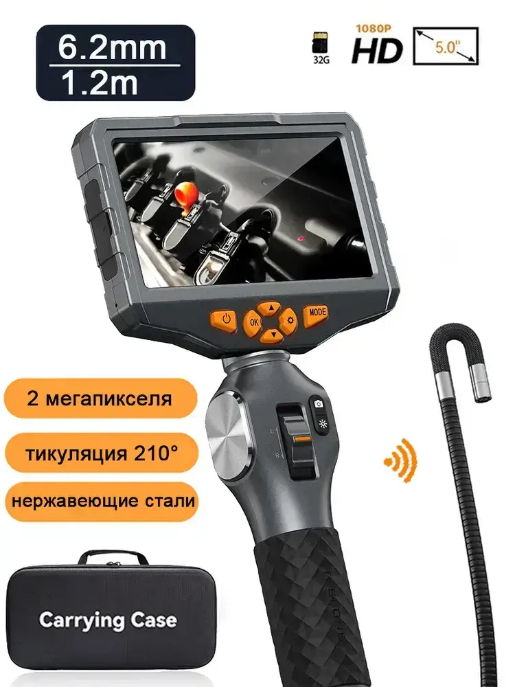 TD500 Автомобильный эндоскоп с wifi /5-дюймовый IPS экран/6,2 мм/вращение 420*/1,2 м