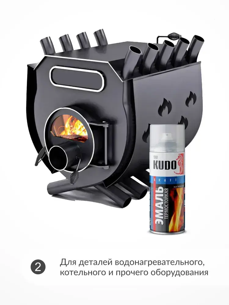 Термостойкая аэрозольная краска для металла "Эмаль KUDO HEAT RESISTANT", антикоррозийная в баллончике, Черная матовая KU-5002