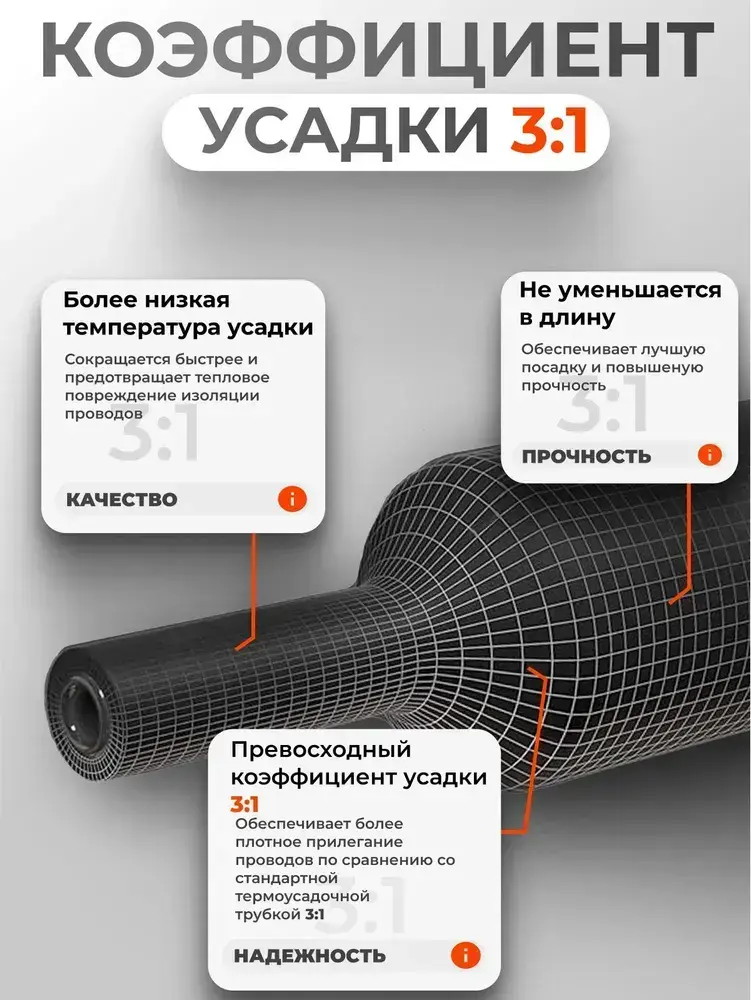 Термоусадка для проводов с клеевым слоем 0,6 метра черная 5 размеров. Термоусадочная трубка для проводов. Диаметр от 2,4 до 7,9мм