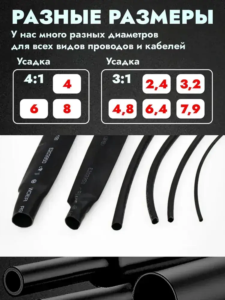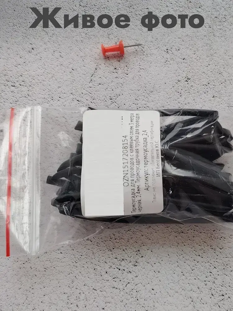 Термоусадка для проводов с клеевым слоем 3 метра черная, 2,4мм. Термоусадочная трубка для проводов. Диаметр 2,4.