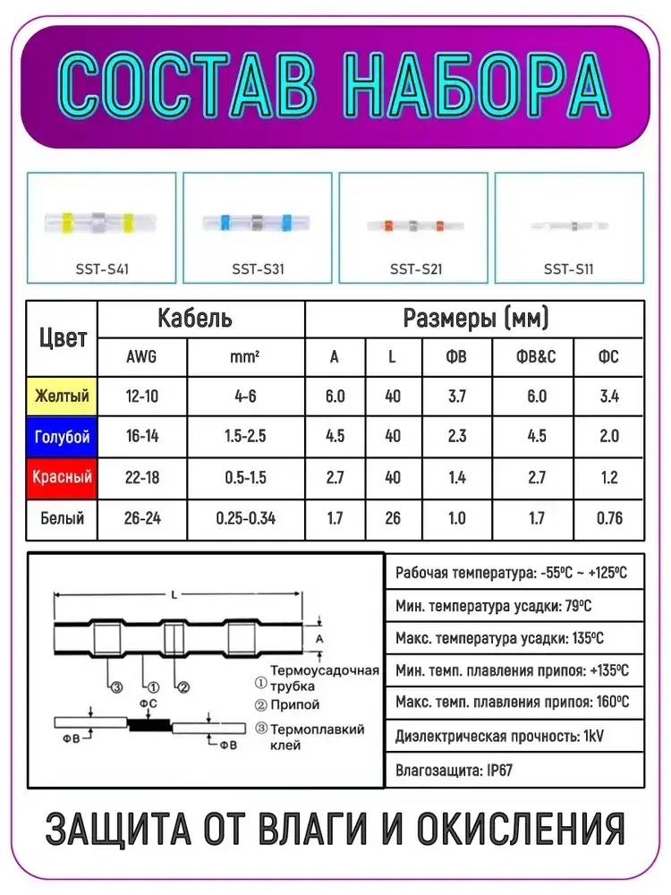 Термоусадка для проводов с припоем и клеевым слоем 100 шт. Набор термоусадочных трубок