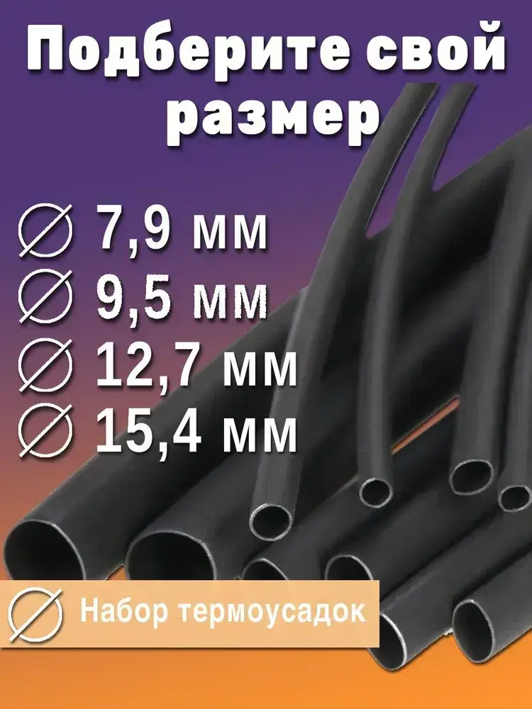 Термоусадка с клеевым слоем набор из 4 штуки черный по 100см БОЛЬШИЕ